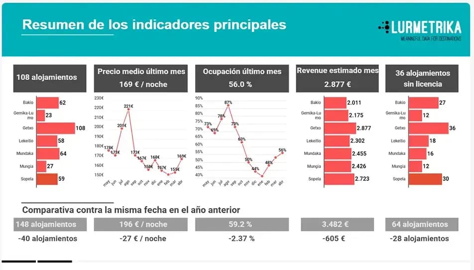 El observatorio turístico Lurmetrika Insights centraliza en un solo lugar los principales indicadores turísticos —ocupación, precios, reputación y capacidad alojativa— con histórico desde 2015 y comparativas de benchmarking frente a destinos de referencia.